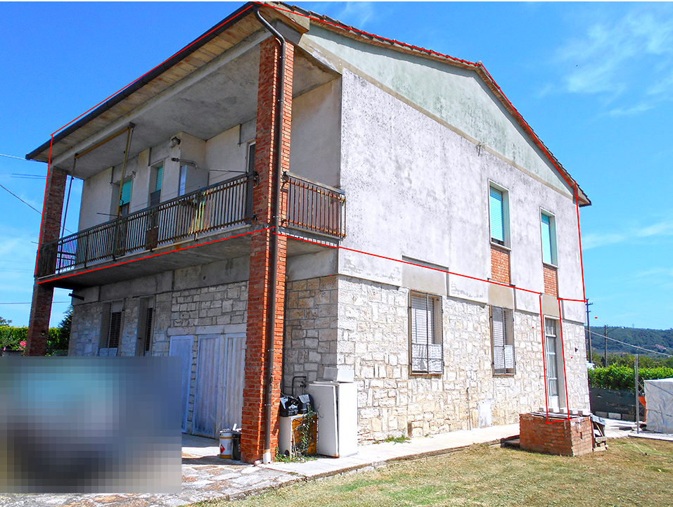 Porzione di fabbricato bifamiliare con ingresso indipendente da scala esterna, situata al primo e ultimo piano. L’abitazione si sviluppa su un unico livello ed è composta da: