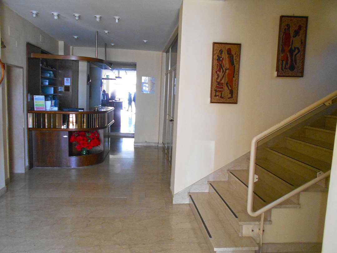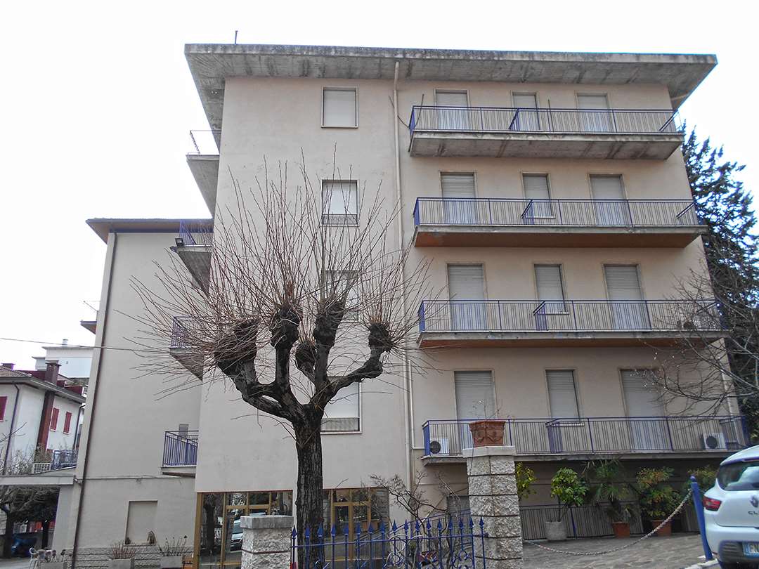 Struttura ricettiva composta da due corpi di fabbrica collegati (4 e 5 piani fuori terra), con resede recintato e cancello carrabile.