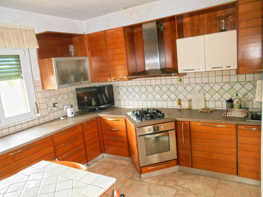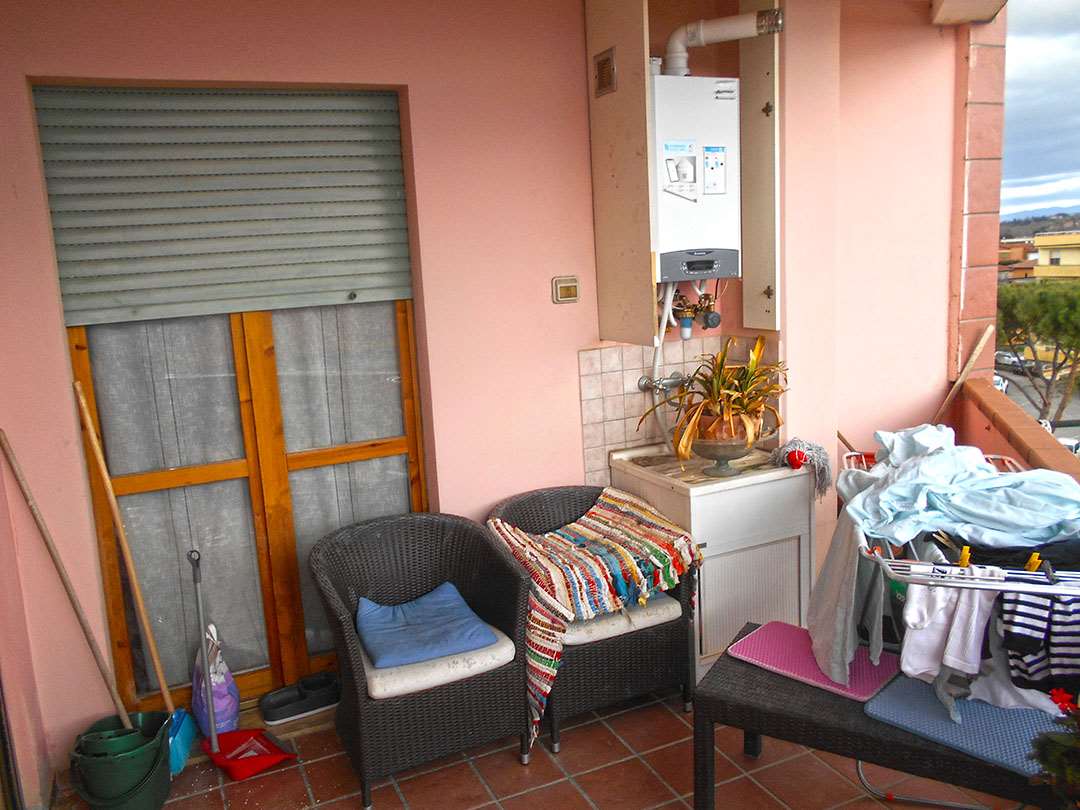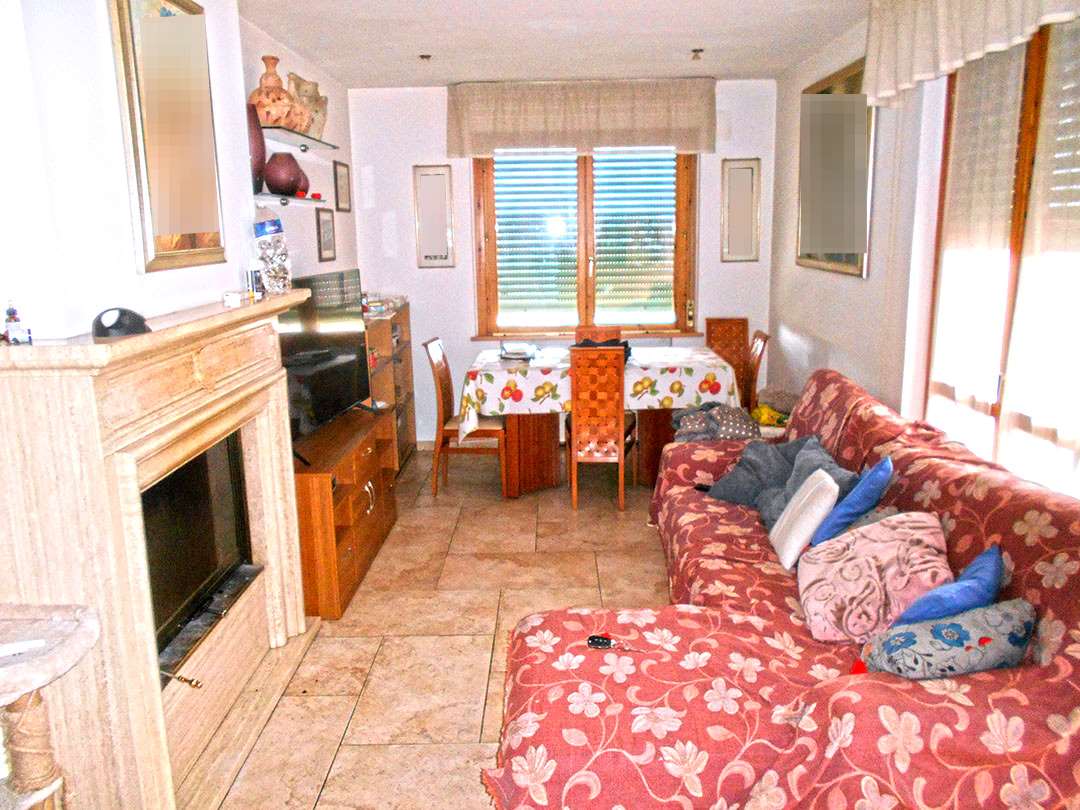 L’abitazione è composta da ingresso, soggiorno con camino, angolo cottura, disimpegno, due camere, due bagni, ripostiglio e due balconi.